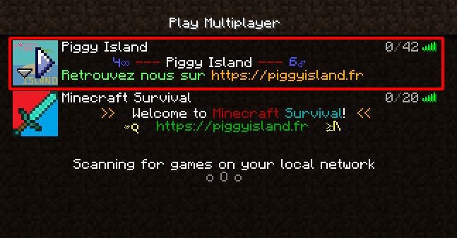Alors, ici on va voir comment rejoindre Piggy Island, dans Minecraft!