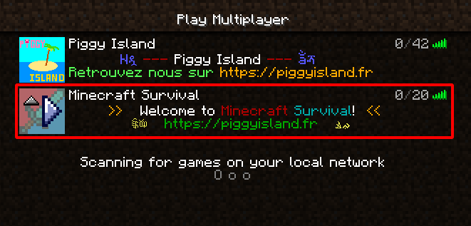 Puis accédez au serveur!